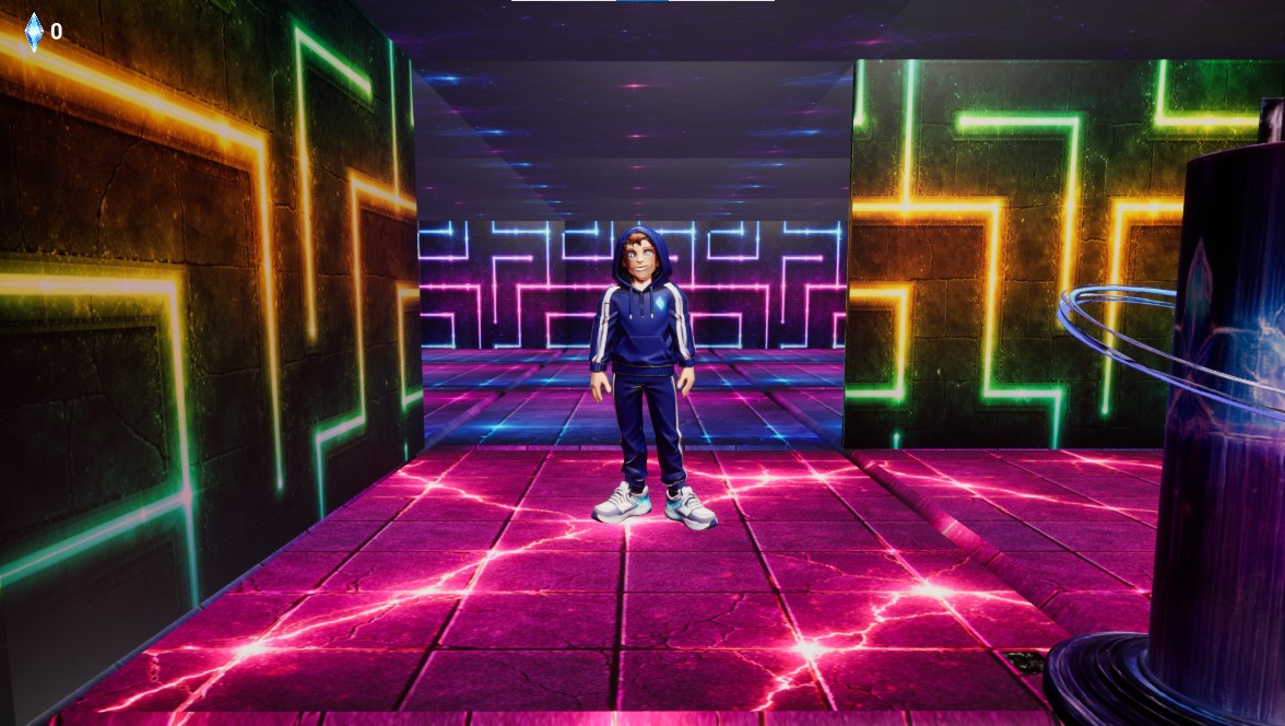 Race through the neon maze and collect the crystal before it disappears. Miss it? Run back to the pillar and trigger another spawn.